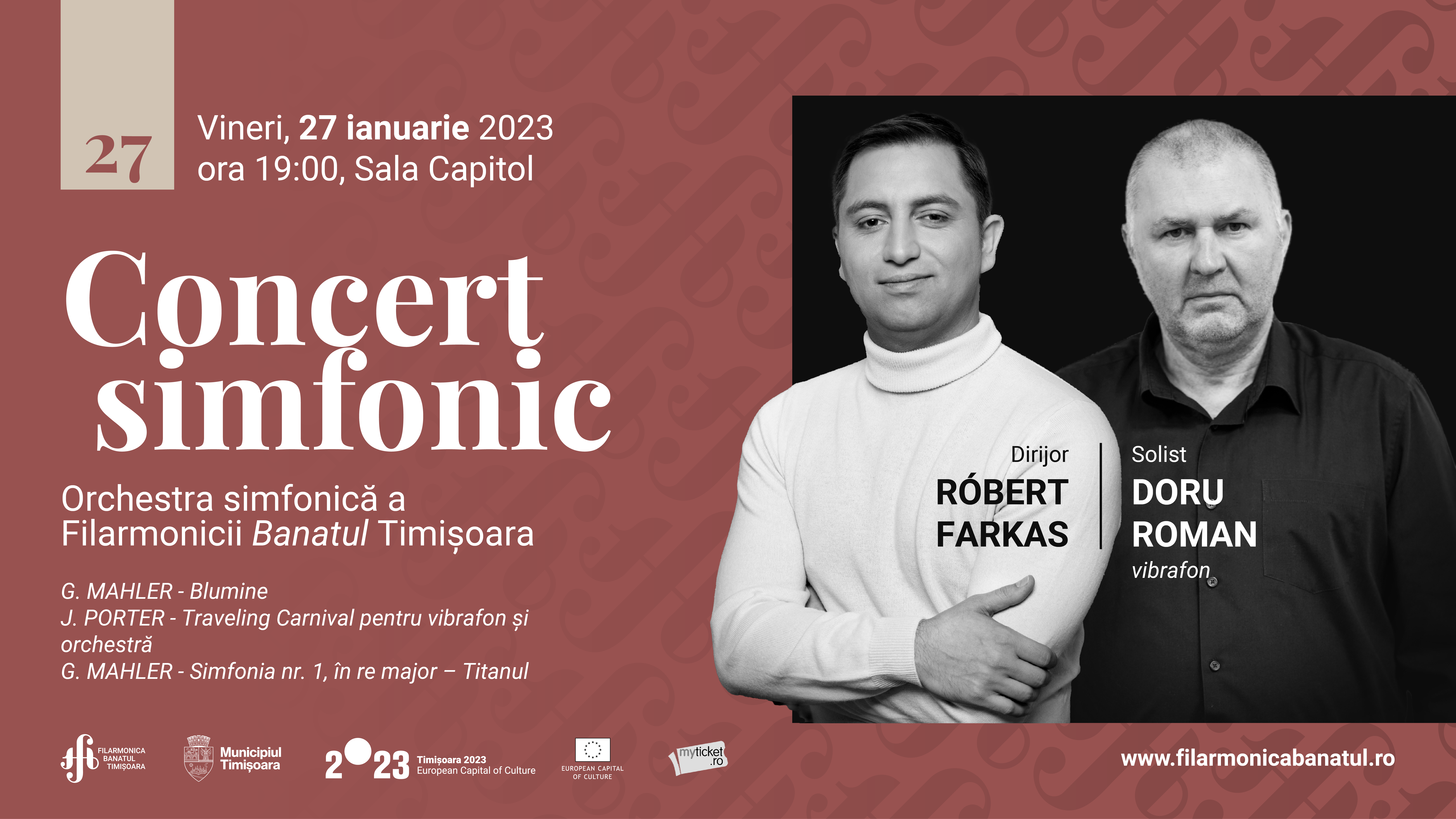 „Concertul simfonic din 27 ianuarie ne oferă lucrări de Gustav Mahler şi J. Porter. Vom asculta piesa „Blumine” şi Simfonia nr.1 în re major de Mahler şi între ele, Traveling Carnival pentru vibrafon și orchestră de J. PORTER.