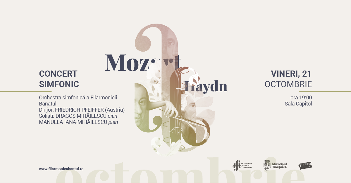 Dublul concert al lui Mozart a fost scris înainte de a părăsi Salzburgul pentru Viena, în 1779. Era destul de fericit că scapă de sub controlul strict al tatălui său care-i îngrădea independenţa la cei 23 de ani. Dorea să scrie un concert pe care să-l cânte împreună cu sora lui mai mare, Maria Anna, pe care o porecliseră în familie „Nannerl”. De aceea lucrarea străluceşte de optimism şi vervă. La un concert dublu, problemele diferă faţă de concertul pentru un singur instrument. Confruntarea are loc, în principal între cei doi protagonişti. Mozart s-a străduit ca părţile lirice sau pasajele dificile să le împartă în mod egal între cei doi solişti. Bunăoară, în partea a doua, orchestra are un rol minimal, de acompaniament delicat al celor doi solişti, pentru a-i pune mai mult în evidenţă. Era profund angajat în această compoziţie, dovadă cadenţele originale şi descoperirea unor schiţe orchestrale foarte inspirate. Cei doi solişti vor fi Dragoş Mihăilescu şi Manuela Iana-Mihăilescu.