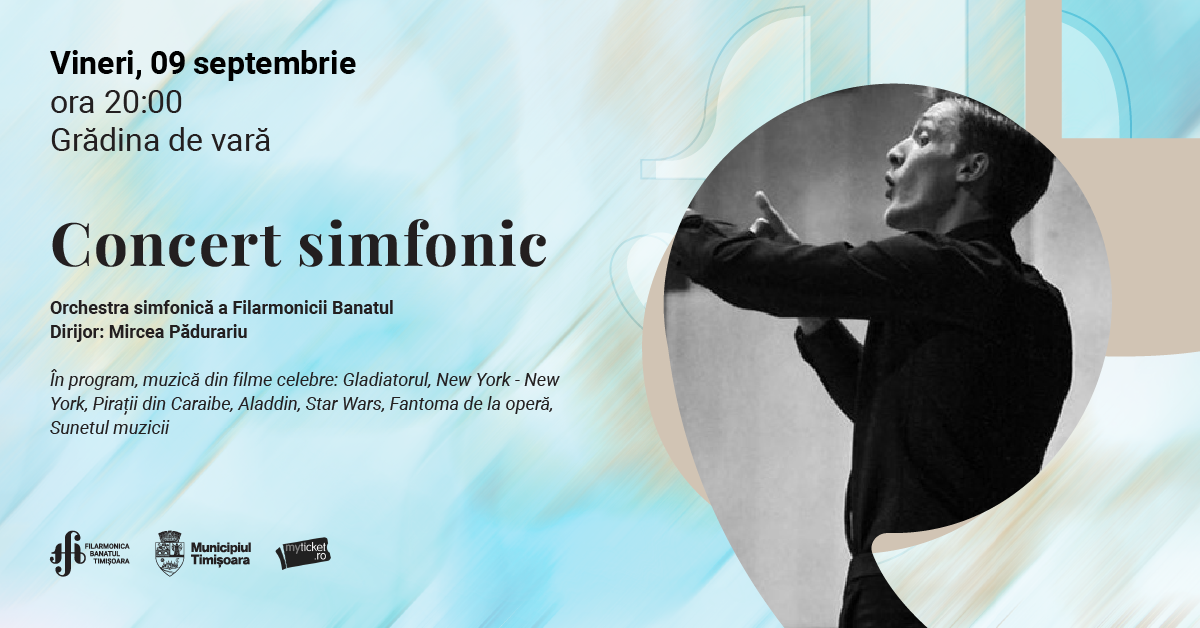 Sub conducerea dirijorului Mircea Pădurariu, Orchestra simfonică a Filarmonicii Banatul va interpreta muzica unor filme celebre precum: Gladiatorul, New York – New York, Pirații din Caraibe, Aladdin, Star Wars, Fantoma de la Operă, Sunetul Muzicii.