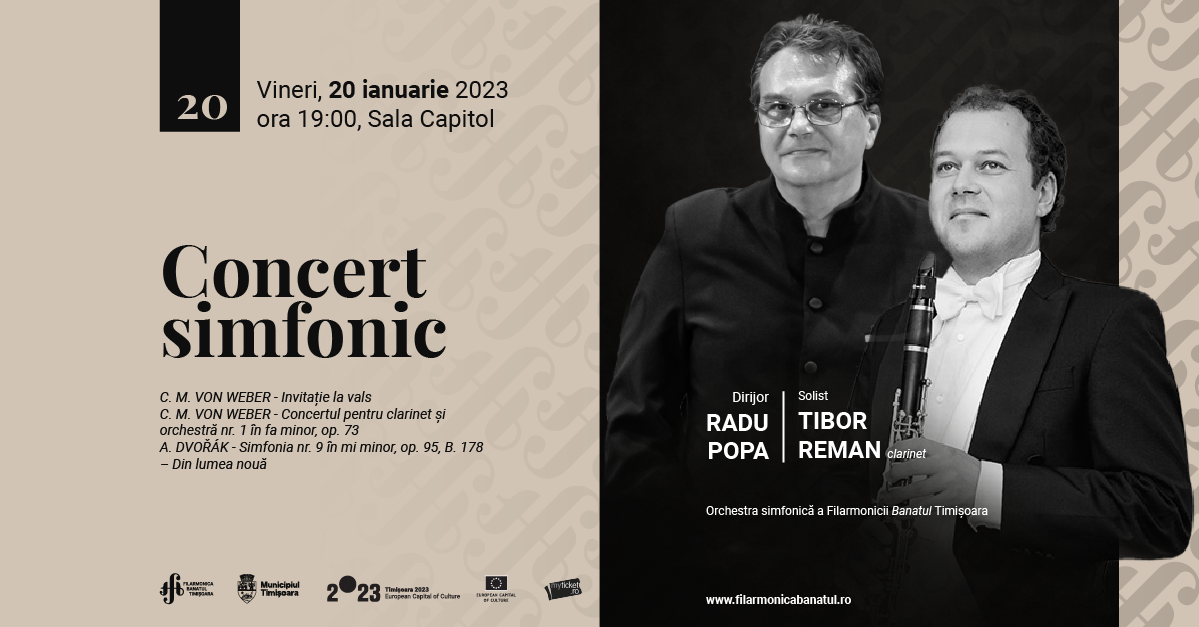„Un program romantic, vineri 20 ianuarie. Sub bagheta dirijorală a maestrului Radu Popa vom asculta Invitaţie la vals de Carl Maria von Weber, Concertul pentru clarinet şi orchestră nr.1 în fa minor, op. 73 tot de Weber şi Simfonia nr. 9 – Din lumea nouă de Antonin Dvoŕák.