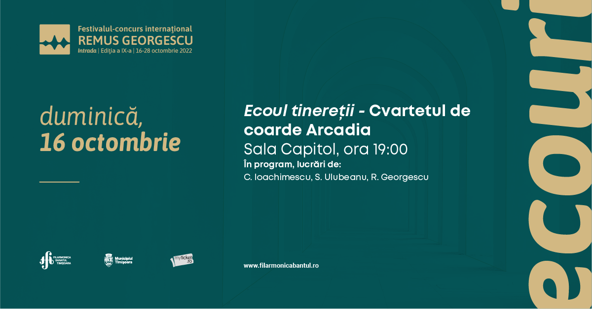 În cadrul recitalului intitulat 𝐸𝑐𝑜𝑢𝑙 𝑡𝑖𝑛𝑒𝑟𝑒𝑡̦𝑖𝑖, 𝗖𝘃𝗮𝗿𝘁𝗲𝘁𝘂𝗹 𝗱𝗲 𝗰𝗼𝗮𝗿𝗱𝗲 𝗔𝗿𝗰𝗮𝗱𝗶𝗮, caracterizat ca fiind „𝘤𝘦𝘭 𝘮𝘢𝘪 𝘷𝘢𝘭𝘰𝘳𝘰𝘴 𝘵𝘢̂𝘯𝘢̆𝘳 𝘤𝘷𝘢𝘳𝘵𝘦𝘵 𝘥𝘦 𝘤𝘰𝘢𝘳𝘥𝘦 𝘥𝘪𝘯 𝘙𝘰𝘮𝘢̂𝘯𝘪𝘢, 𝘤𝘶 […] 𝘷𝘢𝘭𝘰𝘳𝘰𝘢𝘴𝘦 𝘱𝘳𝘦𝘮𝘪𝘪 𝘪𝘯𝘵𝘦𝘳𝘯𝘢𝘵̧𝘪𝘰𝘯𝘢𝘭𝘦 𝘰𝘣𝘵̧𝘪𝘯𝘶𝘵𝘦 𝘭𝘢 𝘤𝘰𝘮𝘱𝘦𝘵𝘪𝘵̧𝘪𝘪𝘭𝘦 𝘥𝘦 𝘨𝘦𝘯”, „𝘶𝘯𝘶𝘭 𝘥𝘪𝘯𝘵𝘳𝘦 𝘤𝘦𝘭𝘦 𝘮𝘢𝘪 𝘢𝘱𝘳𝘦𝘤𝘪𝘢𝘵𝘦 𝘢𝘯𝘴𝘢𝘮𝘣𝘭𝘶𝘳𝘪 𝘥𝘦 𝘱𝘳𝘰𝘧𝘪𝘭 𝘱𝘦 𝘱𝘭𝘢𝘯 𝘮𝘰𝘯𝘥𝘪𝘢𝘭, 𝘢𝘮𝘣𝘢𝘴𝘢𝘥𝘰𝘳𝘪 𝘥𝘦𝘮𝘯𝘪 𝘢𝘪 𝘪𝘮𝘢𝘨𝘪𝘯𝘪𝘪 𝘙𝘰𝘮𝘢̂𝘯𝘪𝘦𝘪 𝘪̂𝘯 𝘭𝘶𝘮𝘦”, va interpreta lucrările 𝐶𝑣𝑎𝑟𝑡𝑒𝑡𝑢𝑙 𝑛𝑟. 1 de 𝐂𝐚̆𝐥𝐢𝐧 𝐈𝐨𝐚𝐜𝐡𝐢𝐦𝐞𝐬𝐜𝐮, Sheroes de 𝐒𝐚𝐛𝐢𝐧𝐚 𝐔𝐥𝐮𝐛𝐞𝐚𝐧𝐮 și 𝐶𝑣𝑎𝑟𝑡𝑒𝑡𝑢𝑙 𝑖̂𝑛 𝑟𝑒 𝑚𝑖𝑛𝑜𝑟 de 𝐑𝐞𝐦𝐮𝐬 𝐆𝐞𝐨𝐫𝐠𝐞𝐬𝐜𝐮, în cadrul 𝑭𝒆𝒔𝒕𝒊𝒗𝒂𝒍𝒖𝒍𝒖𝒊-𝒄𝒐𝒏𝒄𝒖𝒓𝒔 𝒊𝒏𝒕𝒆𝒓𝒏𝒂𝒕̦𝒊𝒐𝒏𝒂𝒍 𝑹𝒆𝒎𝒖𝒔 𝑮𝒆𝒐𝒓𝒈𝒆𝒔𝒄𝒖.