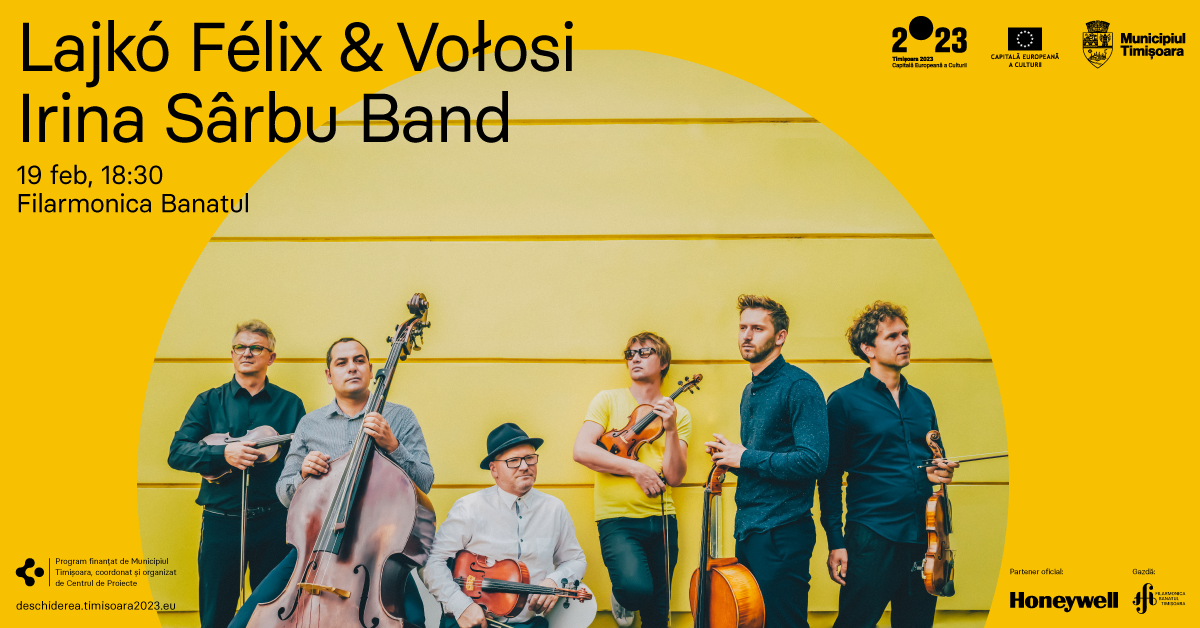 Sărbătoarea preluării titlului de Capitală Europeană a Culturii continuă la Filarmonica Banatul Timișoara cu un nou program captivant. Duminică, 19 februarie 2023, de la ora 18:30, vor urca pe Scena Sălii Capitol două trupe îndrăgite: IRINA SÂRBU BAND și LAJKÓ FÉLIX & VOŁOSI (Ungaria).