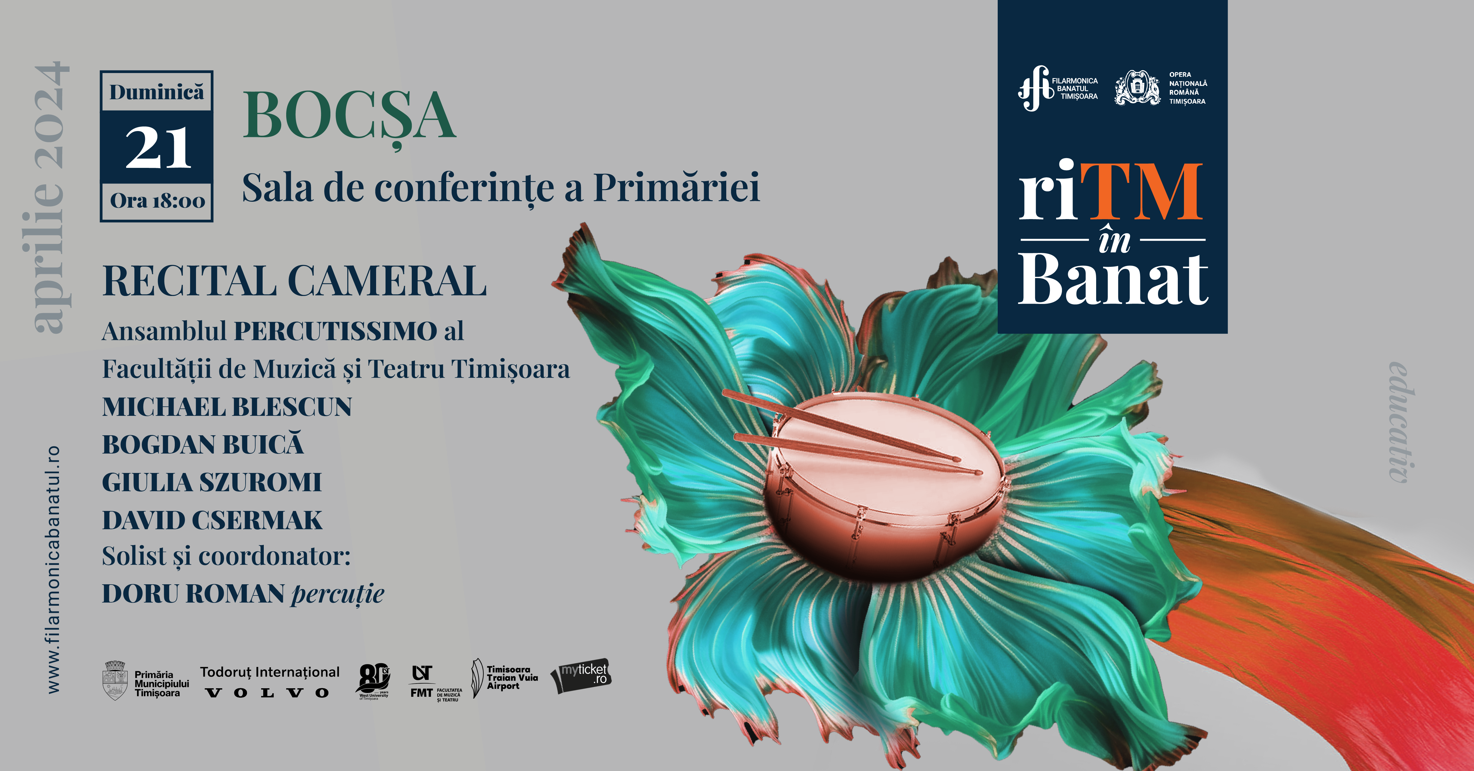 Instrumentele de percuție fac parte din cultura a numeroase popoare, iar ritmurile lor antrenante vor răsuna duminică, 21 aprilie 2024, de la ora 18:00, în Sala de conferințe a Primăriei Bocșa. Publicul este așteptat la un recital cameral de excepție susținut de Ansamblul Percutissimo al Facultății de Muzică și Teatru, avându-l drept coordonator și solist […]