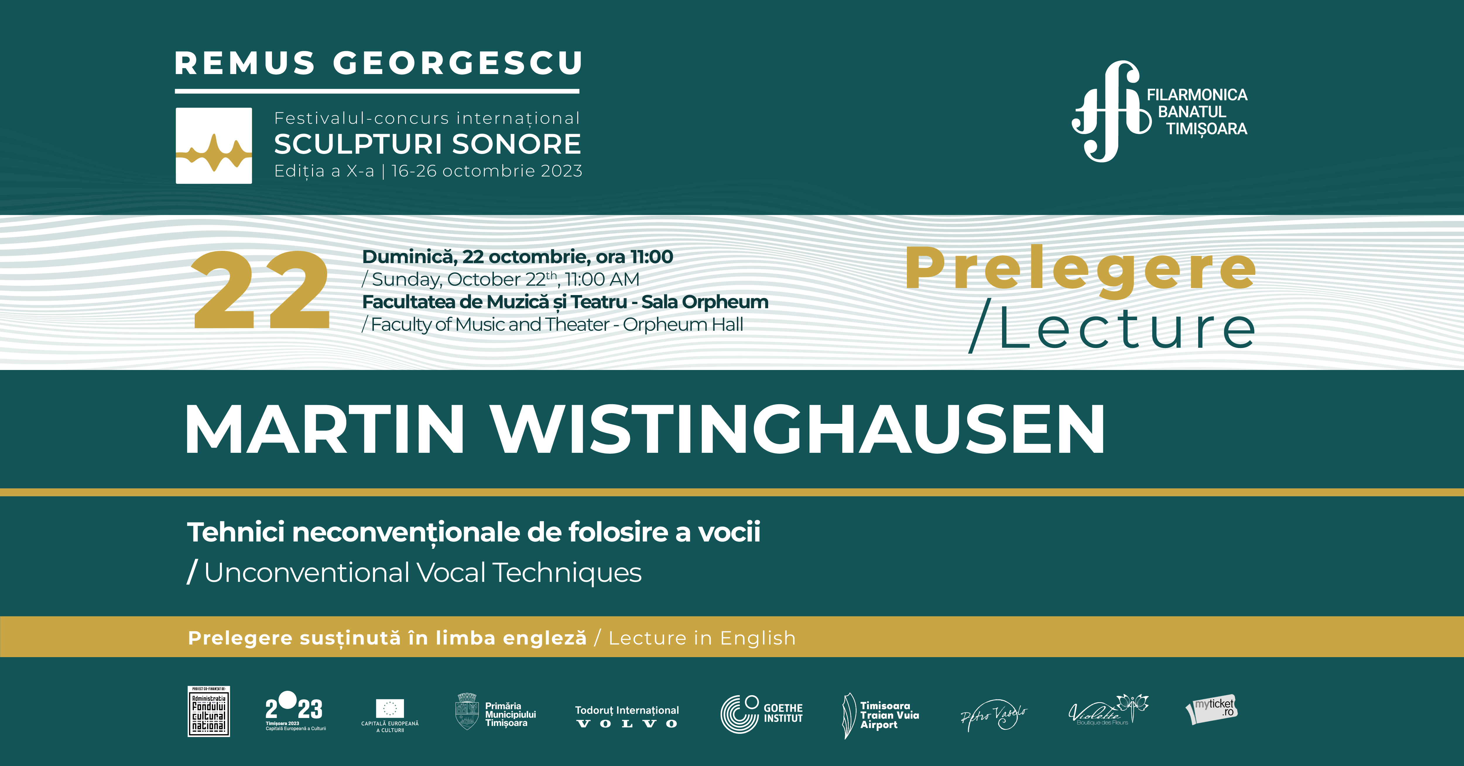 MARTIN WISTINGHAUSEN, compozitor și bas, va susține o prelegere în cadrul Festivalului – Concurs Internațional „Remus Georgescu”, duminică, 22 octombrie 2023, de la ora 11:00, la Sala Orpheum a Facultății de Muzică și Teatru Timișoara.