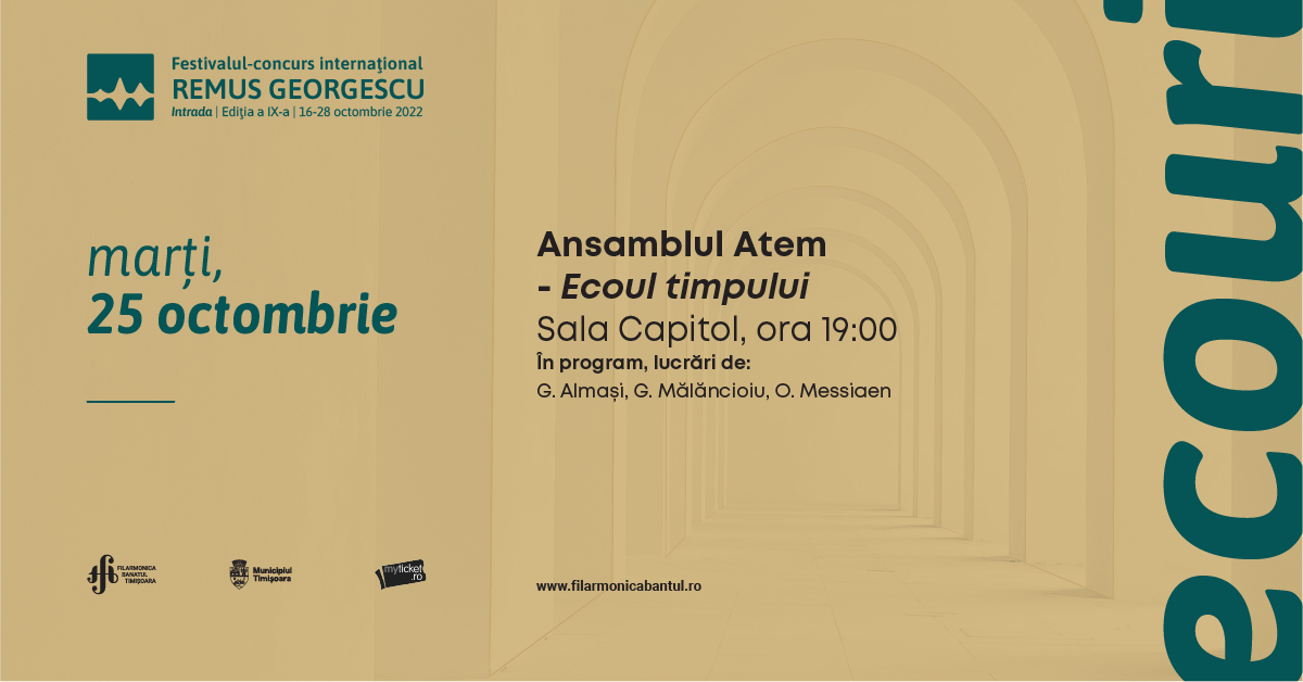 Prezență permanentă în cadrul Festivalului Internațional de Muzică Nouă Intrada (redenumit 𝐑𝐞𝐦𝐮𝐬 𝐆𝐞𝐨𝐫𝐠𝐞𝐬𝐜𝐮, din 2022), 𝐴𝑛𝑠𝑎𝑚𝑏𝑙𝑢𝑙 𝐴𝑡𝑒𝑚 va susține un recital în Sala Capitol, marți, 25 octombrie, de la ora 19:00.