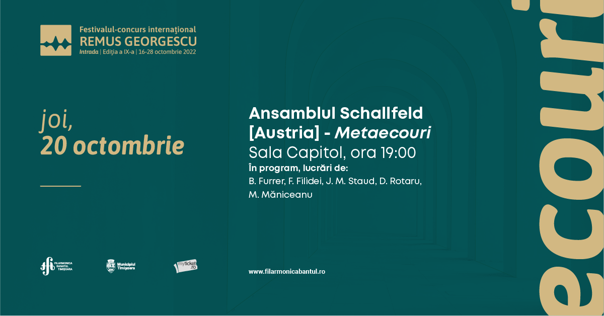 𝐀𝐧𝐬𝐚𝐦𝐛𝐥𝐮𝐥 𝐒𝐜𝐡𝐚𝐥𝐥𝐟𝐞𝐥𝐝 (Graz, Austria), distins anul acesta cu Marele Premiu de Interpretare al Land Steiermark, este format din muzicieni și compozitori tineri, care au trăit, însă, de nenumărate ori deja, experiențele marilor scene ale lumii. Patru dintre componenții ansamblului vor susține joi, 20 octombrie, de la ora 19:00, în Sala Capitol a 𝑭𝒊𝒍𝒂𝒓𝒎𝒐𝒏𝒊𝒄𝒊𝒊 𝑩𝒂𝒏𝒂𝒕𝒖𝒍 𝑻𝒊𝒎𝒊𝒔̦𝒐𝒂𝒓𝒂, recitalul intitulat 𝑀𝑒𝑡𝑎𝑒𝑐𝑜𝑢𝑟𝑖.