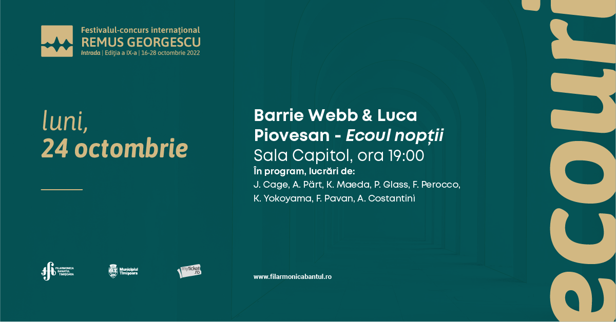 Sala Capitol a 𝑭𝒊𝒍𝒂𝒓𝒎𝒐𝒏𝒊𝒄𝒊𝒊 𝑩𝒂𝒏𝒂𝒕𝒖𝒍 𝑻𝒊𝒎𝒊𝒔̦𝒐𝒂𝒓𝒂 găzduiește, luni, 24 octombrie, de la ora 19:00, un recital al trombonistului britanic 𝘽𝙖𝙧𝙧𝙞𝙚 𝙒𝙚𝙗𝙗 și al acordeonistului italian 𝙇𝙪𝙘𝙖 𝙋𝙞𝙤𝙫𝙚𝙨𝙖𝙣, intitulat 𝐸𝑐𝑜𝑢𝑙 𝑛𝑜𝑝𝑡̦𝑖𝑖.