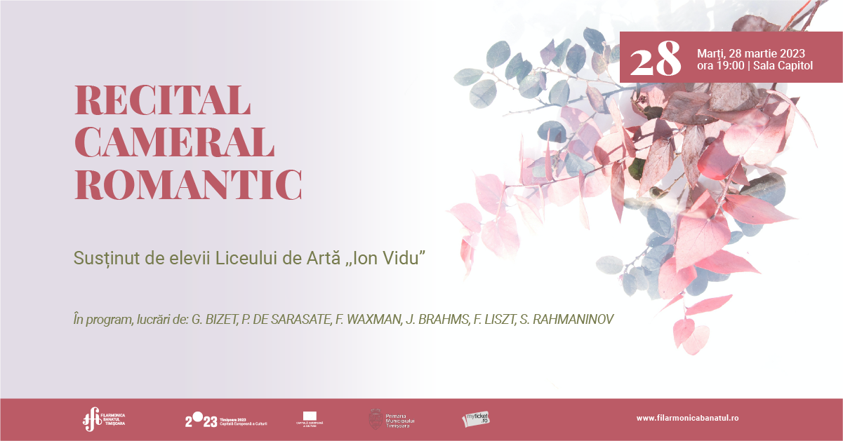 Elevii Liceului de Artă „Ion Vidu” Timișoara vă invită la un recital cameral romantic, marți 28 martie, 2023, de la ora 19:00.