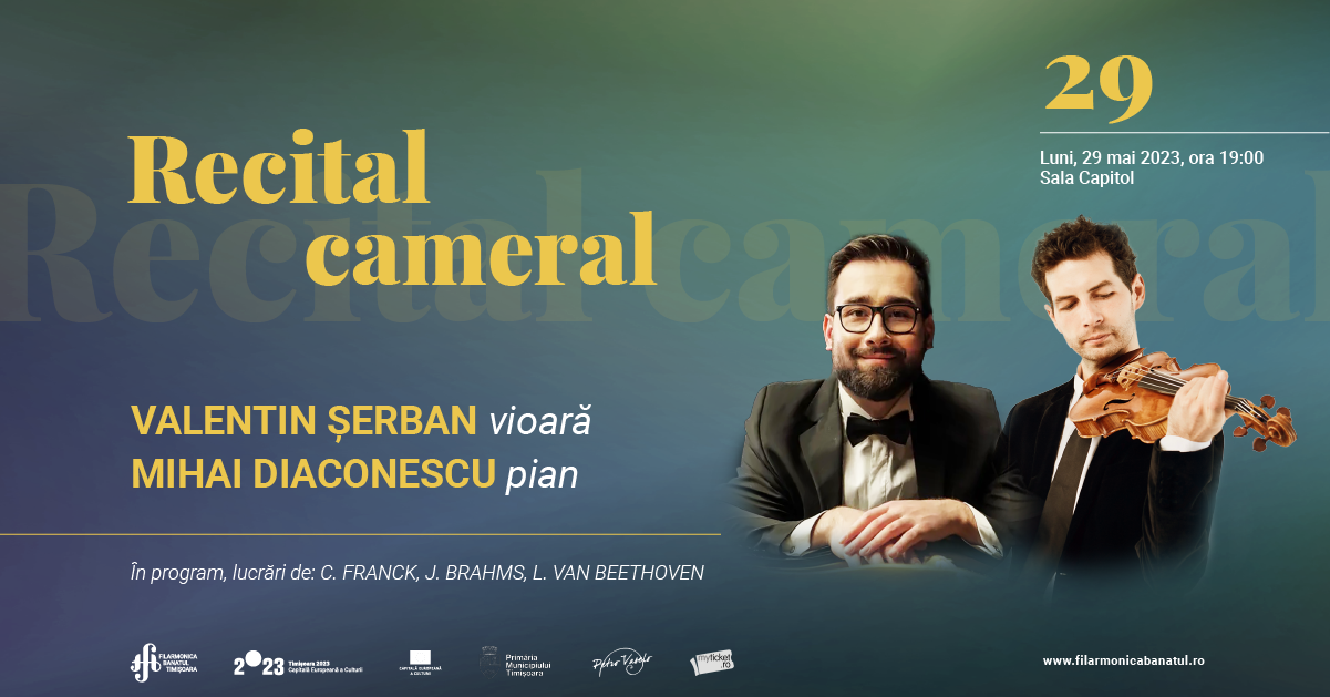 Acordurile de vioară se împletesc cu cele de pian, luni, 29 mai 2023, într-un recital cameral ce îi are ca protagoniști pe violonistul VALENTIN ȘERBAN și pe pianistul MIHAI DIACONESCU.
