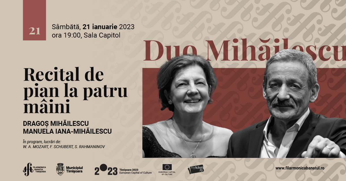 DUO MIHĂILESCU vă invită la un recital de pian la patru mâini, sâmbătă, 21 ianuarie 2023.