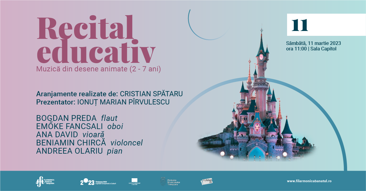 Muzica din desene animate, în interpretarea soliștilor ANA DAVID – vioară, BENIAMIN CHIRCĂ – violoncel, BOGDAN PREDA – flaut, EMŐKE FANCSALI – oboi și ANDREEA OLARIU – pian, promite să îi captiveze din nou pe copii, sâmbătă, 11 martie 2023.