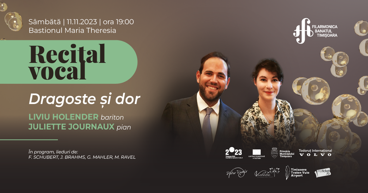 Recital vocal Dragoste și dor | LIVIU HOLENDER – bariton, JULIETTE JOURNAUX – pian