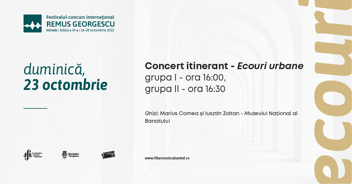 Parcul Central Timisoara, Timiș, RomâniaSuntem mândri să revenim și în această ediție a Festivalului-Concurs Remus Georgescu, ediția a X-a, cu un concert itinerant. Cei cinci laureați ai concursului de compoziție din cadrul Festivalului își vor audia lucrările cântate în premieră, în cadrul acestui concert inedit, fiind selectate cinci locuri neconvenţionale din Timișoara, după cum urmează: Parcul Central, Cărturești (Piața […]